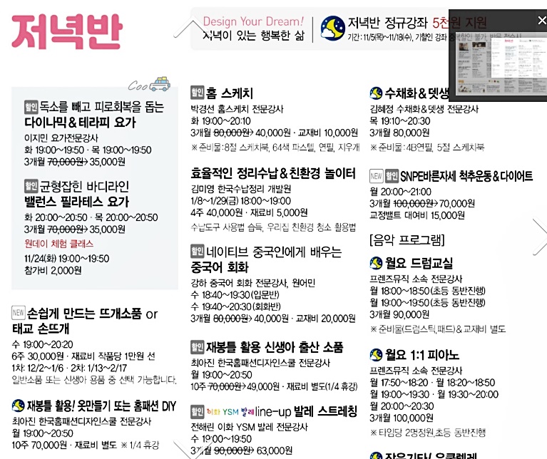 이마트 문화센터 프로그램 안내