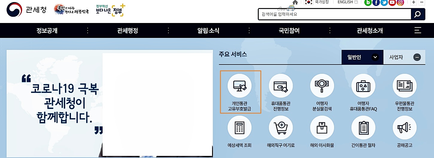 상품을 구입하실 때에는 '해외용 비자나 마스터카드와 배대지, 통관용 고유부호' 를 알고 계셔야 합니다. 해외 물건을 국내로 들여올 때에는 개인통관고유부호를 발급받으셔야 주문이 가능합니다. 관세청 홈페이지에 접속하시면 개인통관고유부호 발급 아이콘이 있습니다.