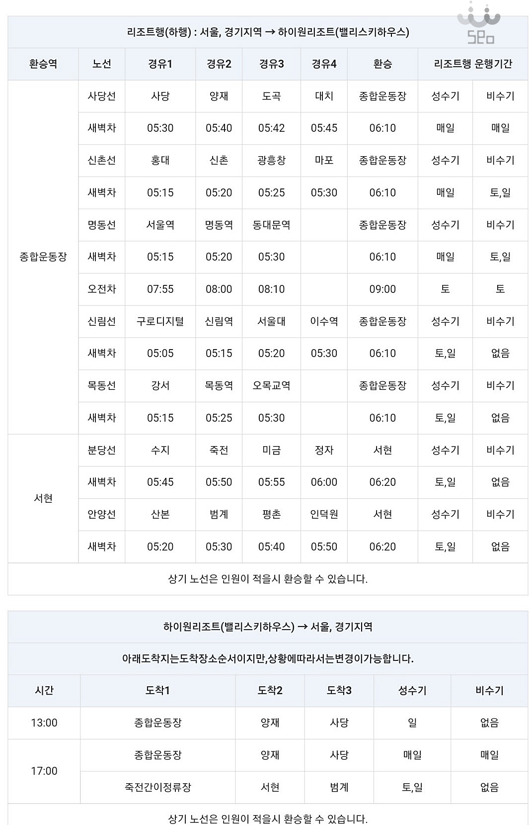 시즌권 구매시 셔틀버스는 무료로 이용 가능하고, 셔틀 이용 지역은 최초 등록 후 변경할 순 없다고 하네요. 지방 셔틀버스는 기존에 부산과 대전, 세종/청주도 운행했지만 올해는 대구와 울산만 운영한다고 합니다.