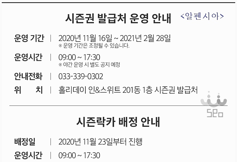 2020 스키장 개장일 시즌권 혜택 및 사용자 정보 등록