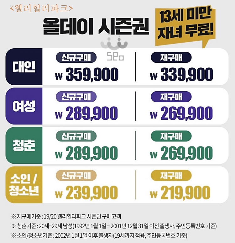 웰리힐리파크 11월말 예정 (시즌권 2차 판매기간 10/6-11/19)