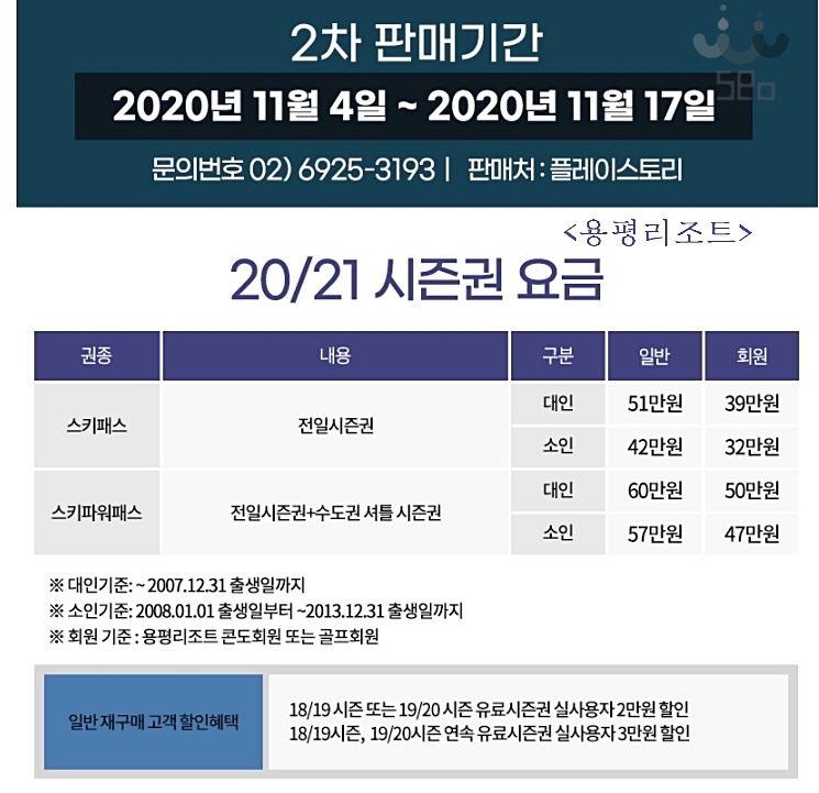 용평리조트 11월말/ 12월초 예상 (2차 판매기간 11/4-11/17)