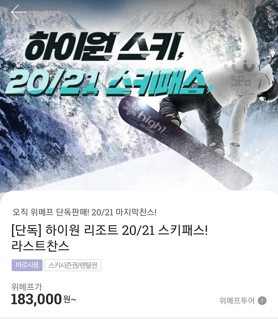 오크밸리리조트 스노우파크 (원주) : 1차 2차 판매완료(대인 239,000원/소인149,000원)