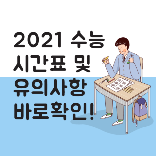 2021학년도 수능 날짜가 코앞으로 다가왔습니다. 저도 수능이 얼마 남지 않았을 때에는 굉장히 두근두근한 마음으로 디데이를 기다렸던 기억이 있는데요. 2021 수능 시간표 및 유의사항 알아보도록 하겠습니다.