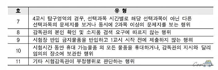 부정행위에 적발되면 1년간 응시자격이 정지되고, 정지기간이 종료되더라도 재응시를 원하는 경우 20시간의 인성교육이 이루어지니 주의하고 부정행위를 하지 않는 것이 편하겠죠?