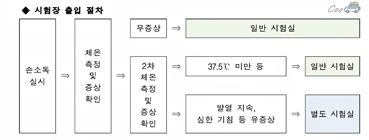 매교시마다 시험실에 출입할 경우 손소독은 필수이며, 모든 수험생들은 한국사 영역 응시를 하지 않는 경우 수능 응시가 무효처리된다고 하니 꼭 응시해주시기 바랍니다.