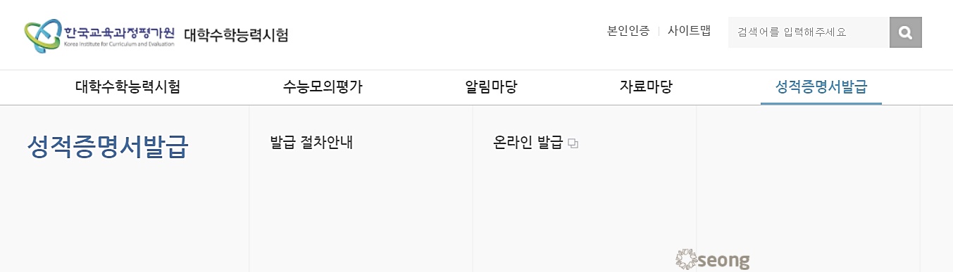 수능성적 조회 준비물 온라인 발급