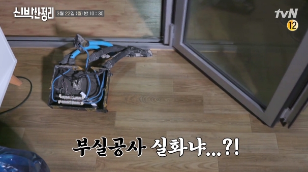 이 외에 인테리어 부실 공사 피해 사실이 드러나면서 MC들은 경악을 금치 못했습니다. 공사비를 선불로 믿고 납부했는데, 대충 날림공사 를 하고 인테리어 업자는 도망가 버렸습니다. 한 방의 상태는 불을 켤 수 조차 없고, 폴딩도어는 마감을 대충한 바닥 탓에 문을 닫을 수조차 없었습니다.
