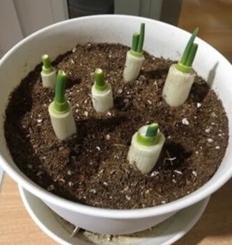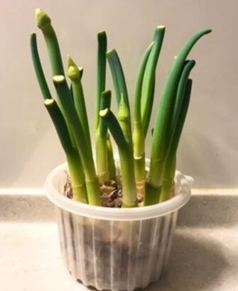 뿌리 끝을 화분이나 물 속에 넣어 두면 한동안 녹색 싹이 피어나지만, 3-4번 정도면 점점 약해져 생산이 중단되곤 합니다.파가 꽃을 피운다면, 꽃들을 샐러드에 사용할 수도 있습니다.